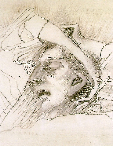 Os nove desenhos a carvão, exemplos de um expressionismo intenso, vigoroso, são composições derivadas de um conjunto realizado a caneta que, sim, foram compostos ao lado do leito de morte da mãe do autor. Esses trabalhos têm recebido merecidos estudos por críticos, historiadores, entre outros. Há, quase sempre, uma busca de relações com outras obras, com outros movimentos artísticos.