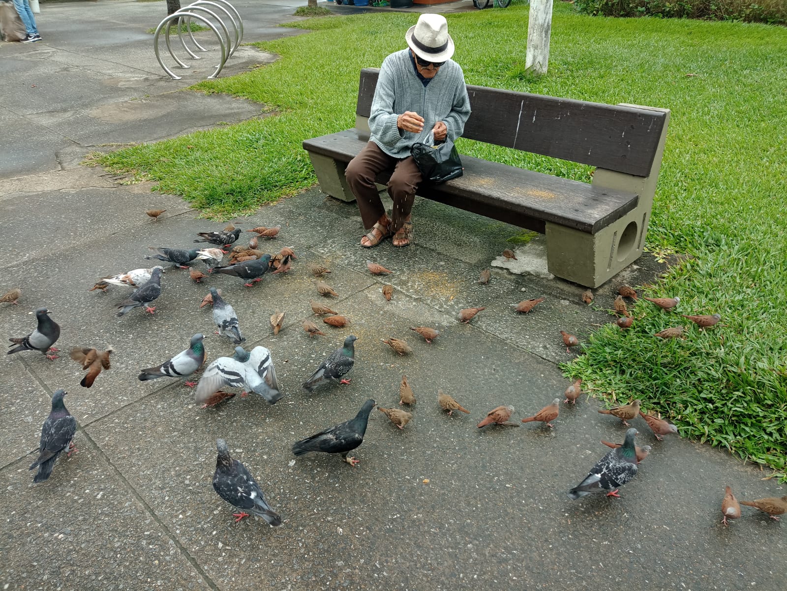 Do que há em Santos, a cidade que escolhemos para viver, algo absolutamente fantástico são os pássaros cantando, voando e levando sua vidinha ao longo do imenso jardim da orla. Há inúmeros outros que moram em árvores que ladeiam os canais que atravessam a cidade. Outros nas alamedas e jardins da cidade. Em alguns momentos cantam, gorjeiam, piam e, sobretudo, voam livres. Às vezes vêm bem perto dos bancos do jardim, caminham pelas calçadas da praia e, algumas espécies, amontoam-se ao redor de quem as presenteia com alimento.