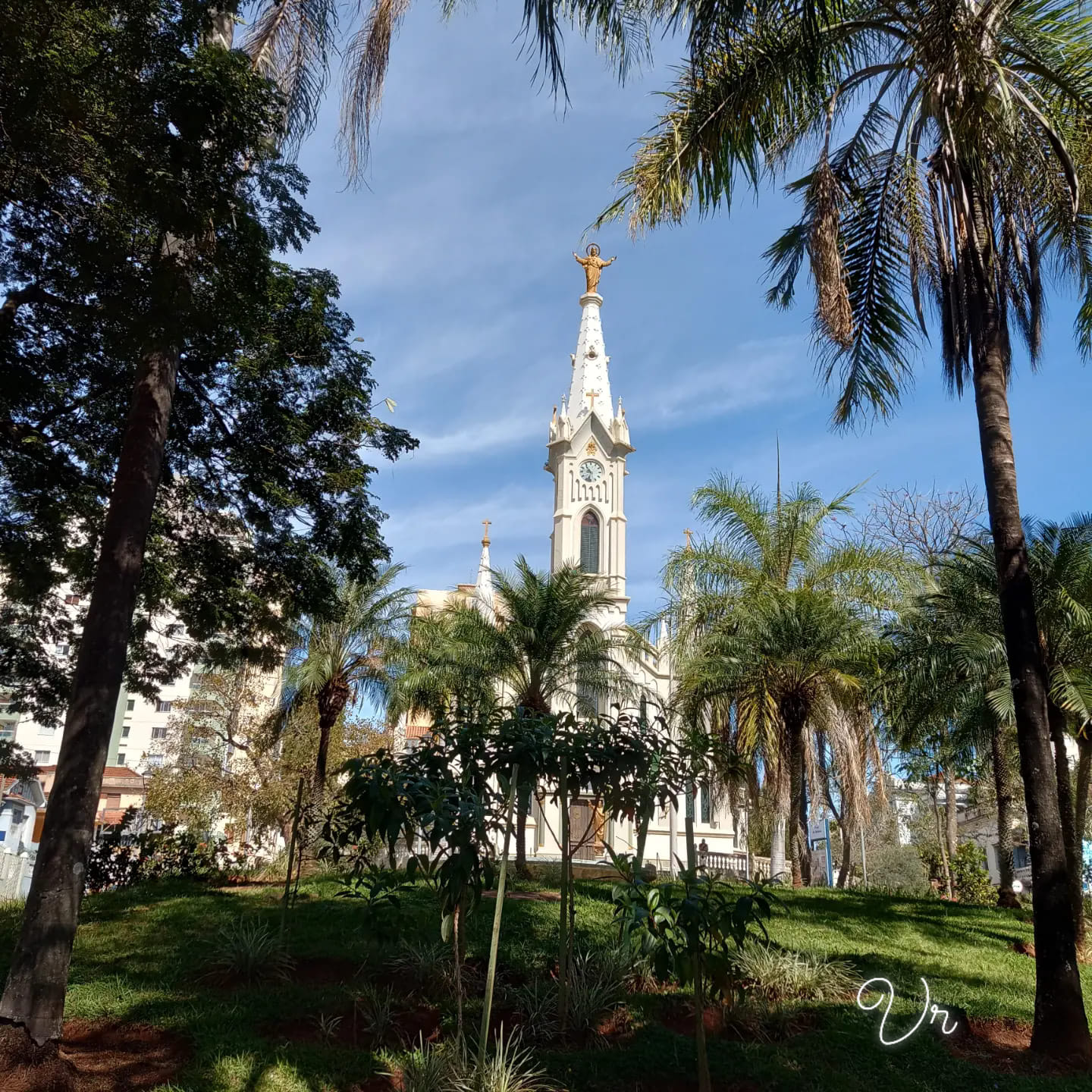 Uma rápida saída e caminho pela Praça Rui Barbosa, nesse domingo ensolarado de Uberaba. O céu azul desse dia brilhante tem, no alto da torre da catedral metropolitana, a imagem de Cristo soberano, vigilante, tomando conta de tudo que sempre foi dele. Me sinto solitário caminhando pela praça vazia, com um ou outro veículo subindo ou descendo indiferente à beleza das árvores, ao canto dos pássaros. Os automóveis estão com vidros escuros, fechados, escondendo passageiros.