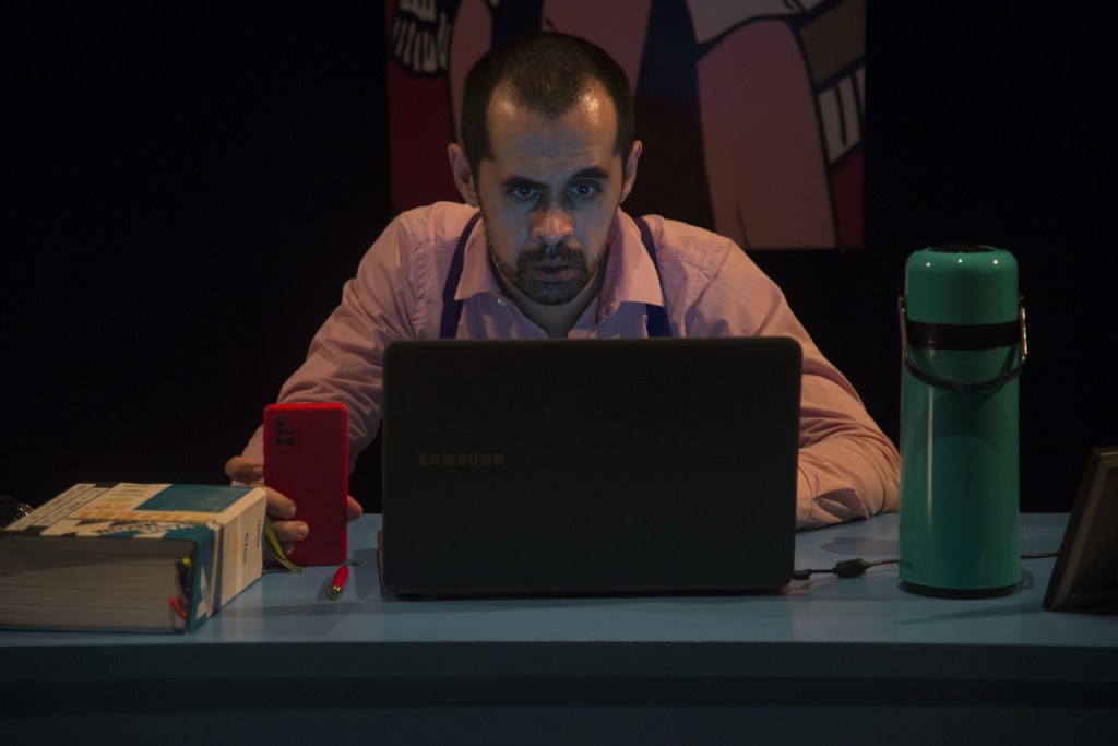 Marcelo Lazzaratto, ator e diretor em TEBAS. Foto: João Caldas.