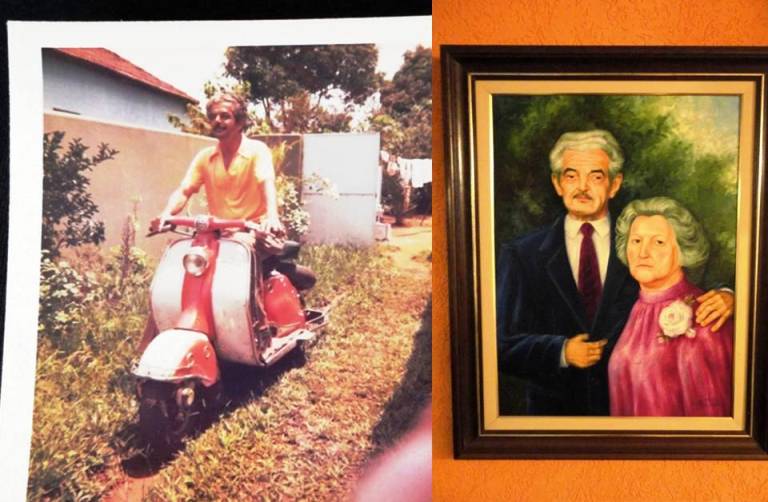 Nas bodas de ouro meus pais receberam de presente um retrato, pintura a óleo, feita por Salles Tiné.  Devidamente emoldurada, o quadro ganhou lugar de honra na sala e enquanto colocávamos o objeto na parede, papai disse: “-Estou parecendo o Juscelino Kubitschek.” Foi a melhor maneira de dizer que havia gostado, que estava feliz com o presente. Os mineiros entenderão melhor a comparação com o ex-presidente.