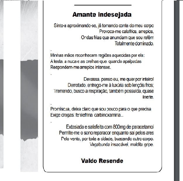 Uma noite Amélia reapareceu radiante. Madura ganhara formas fartas, bem proporcionadas. Portava joias, sapatos e bolsa de couro legítimo e a roupa era coisa para gente de fino trato. O boteco estranhou aquela grã-fina sempre de braço dado com um sujeito que só podia ser doutor. Terno bem cortado, cabelo engomado, disposto a beber e comer do bom e do melhor. Ninguém entendeu o que fazia o casal passeando pela Lapa. O boteco era bom, mas a desconfiança cresceu quando Amélia voltou usando decotes ousados, fendas de saia que revelavam coxas perfeitas e, novidade para o local, calças compridas, apertadas, evidenciando a generosidade do tempo e da natureza.