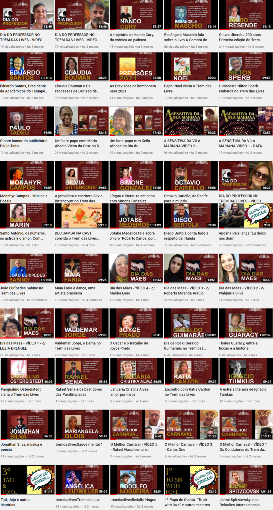 O Trem das Lives está construindo um belo acervo de vídeos que abordam diferentes faces da cultura brasileira. Entre no YouTube, siga-nos, ative o sininho sobre notificações de novos vídeos!