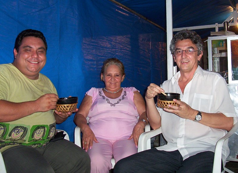 Experimentando Tacacá ao lado de D. Maria do Carmo e Emanoel Freitas