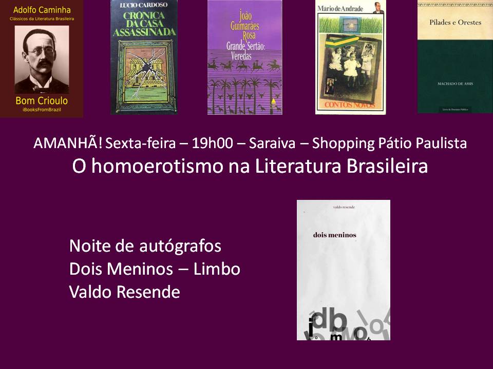 • 15h: Palestra “O homoerotismo na literatura brasileira”, com Valdo Resende;