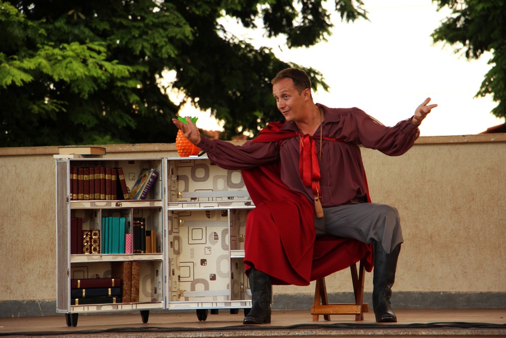 (O CONTADOR ENCERRA SUA APRESENTAÇÃO COM UM AGRADECIMENTO. FECHA A SUA MALA BIBLIOTECA E SAI DE CENA).