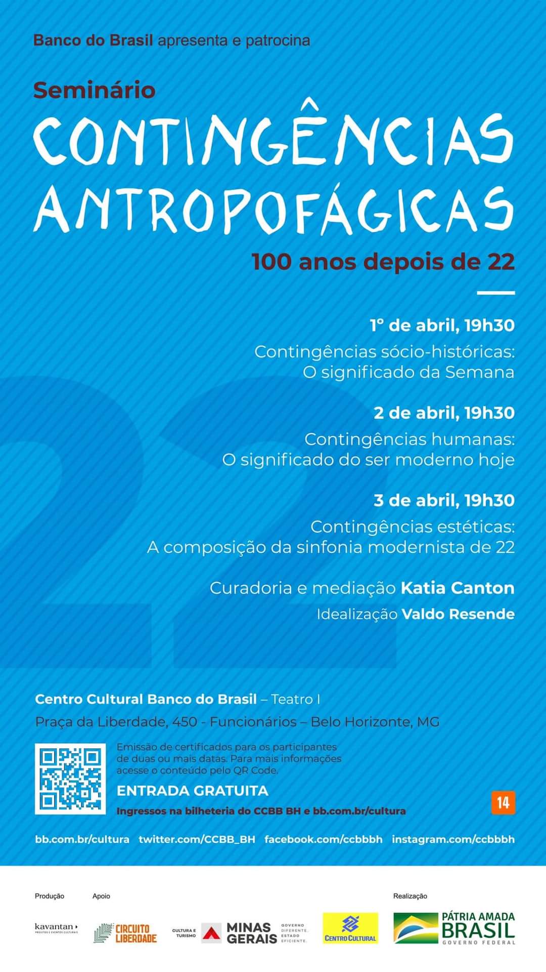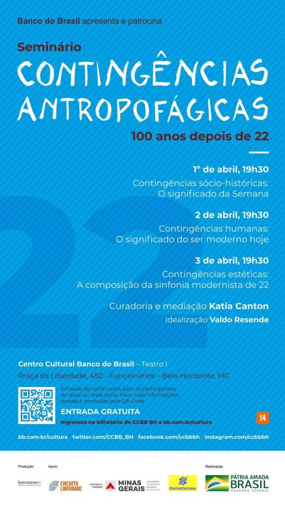 Para celebrar o centenário da Semana de Arte Moderna de 1922, o projeto “Contingências Antropofágicas / 100 anos depois de 22” traz três dias de seminário para o CCBB BH, neste início do mês de abril 💡