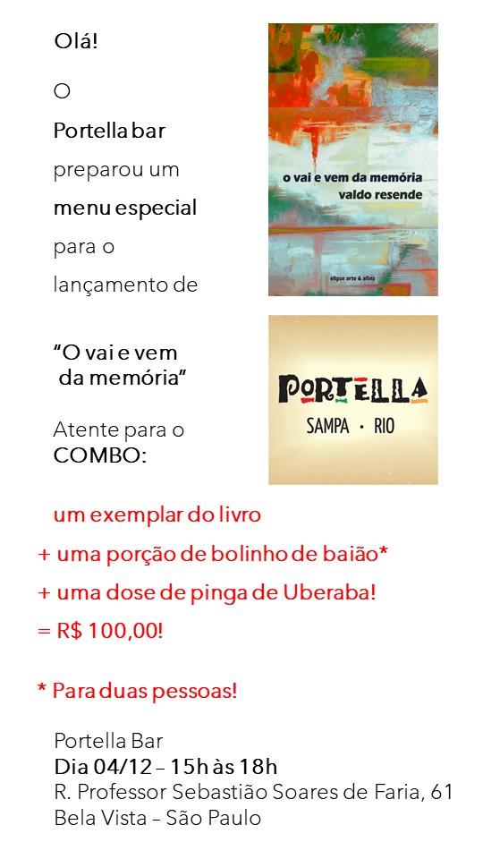 - Local: Portella Bar – Rua Professor Sebastião Soares de Faria, 61 – Bela Vista – São Paulo – SP